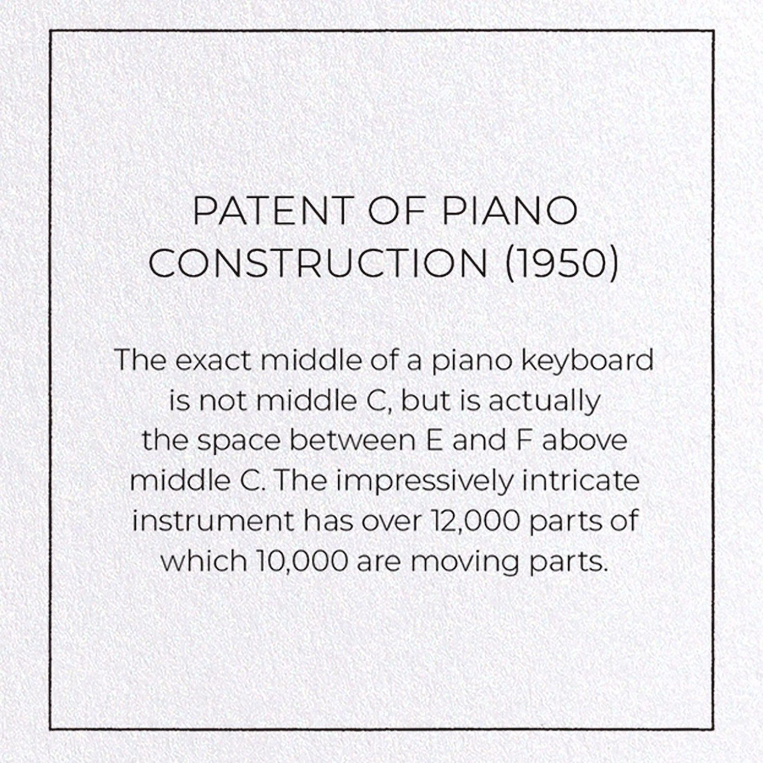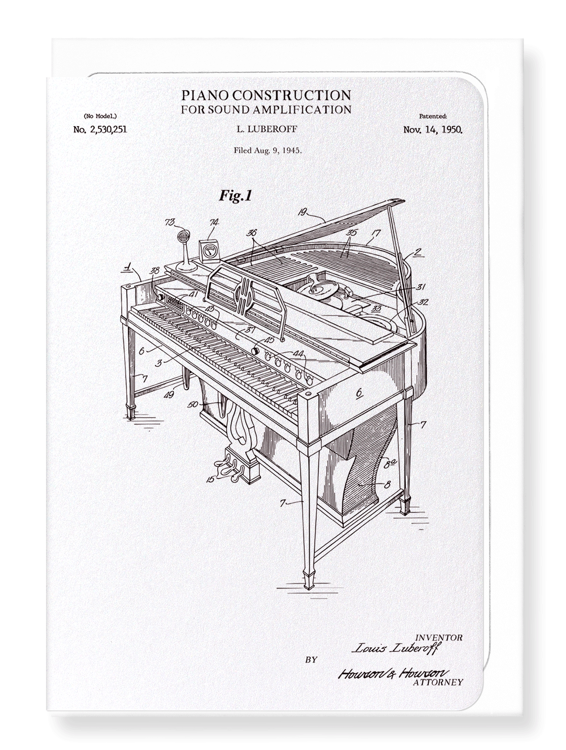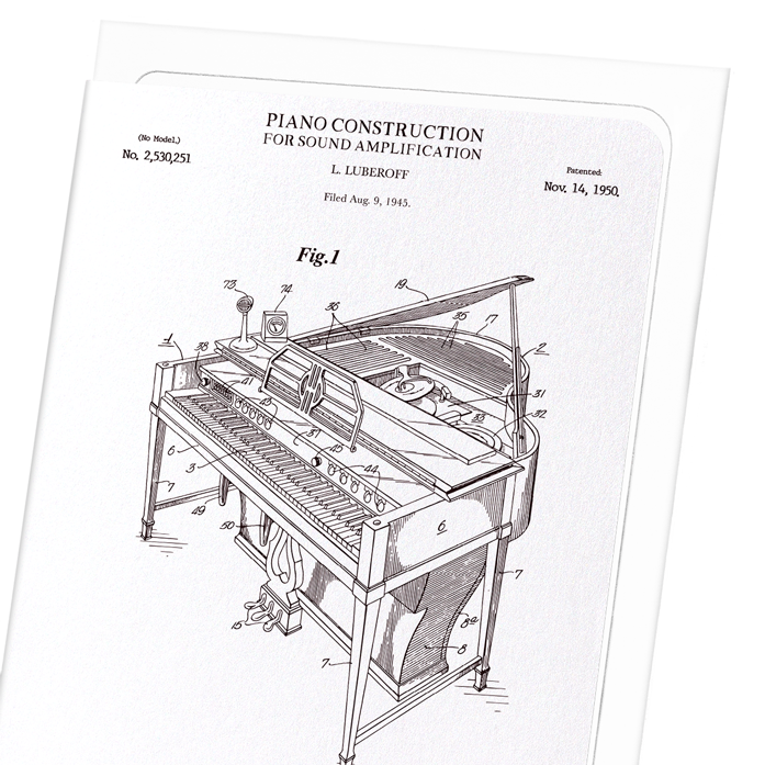 PATENT OF PIANO CONSTRUCTION (1950): Patent Greeting Card