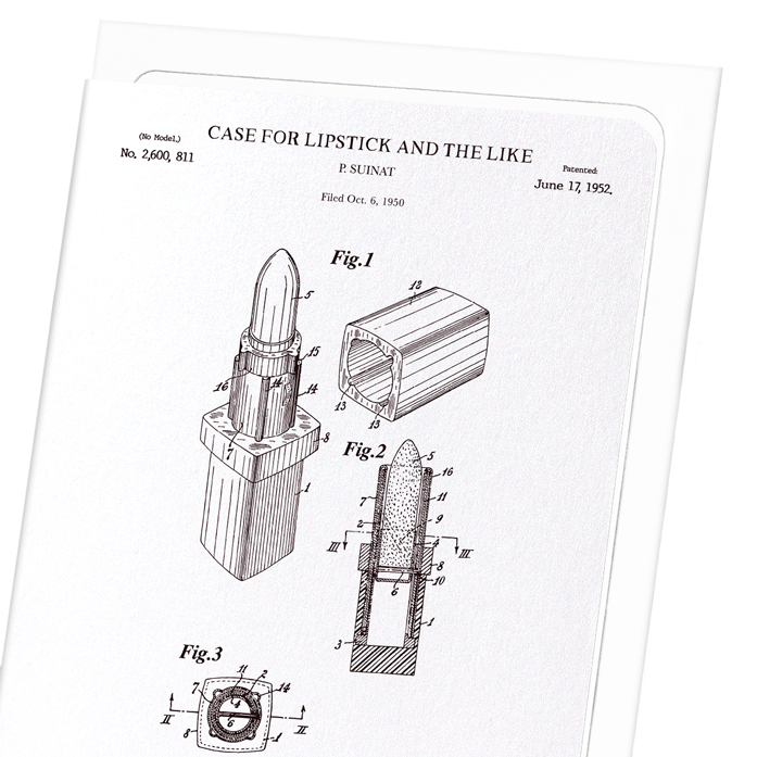 PATENT OF LIPSTICK CASE (1952): Patent Greeting Card