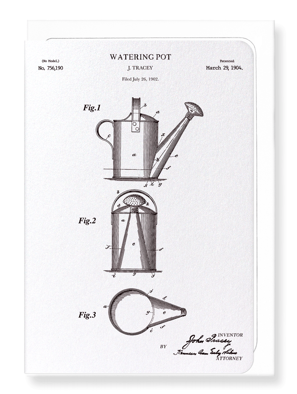 PATENT OF WATERING POT (1904): Patent Greeting Card