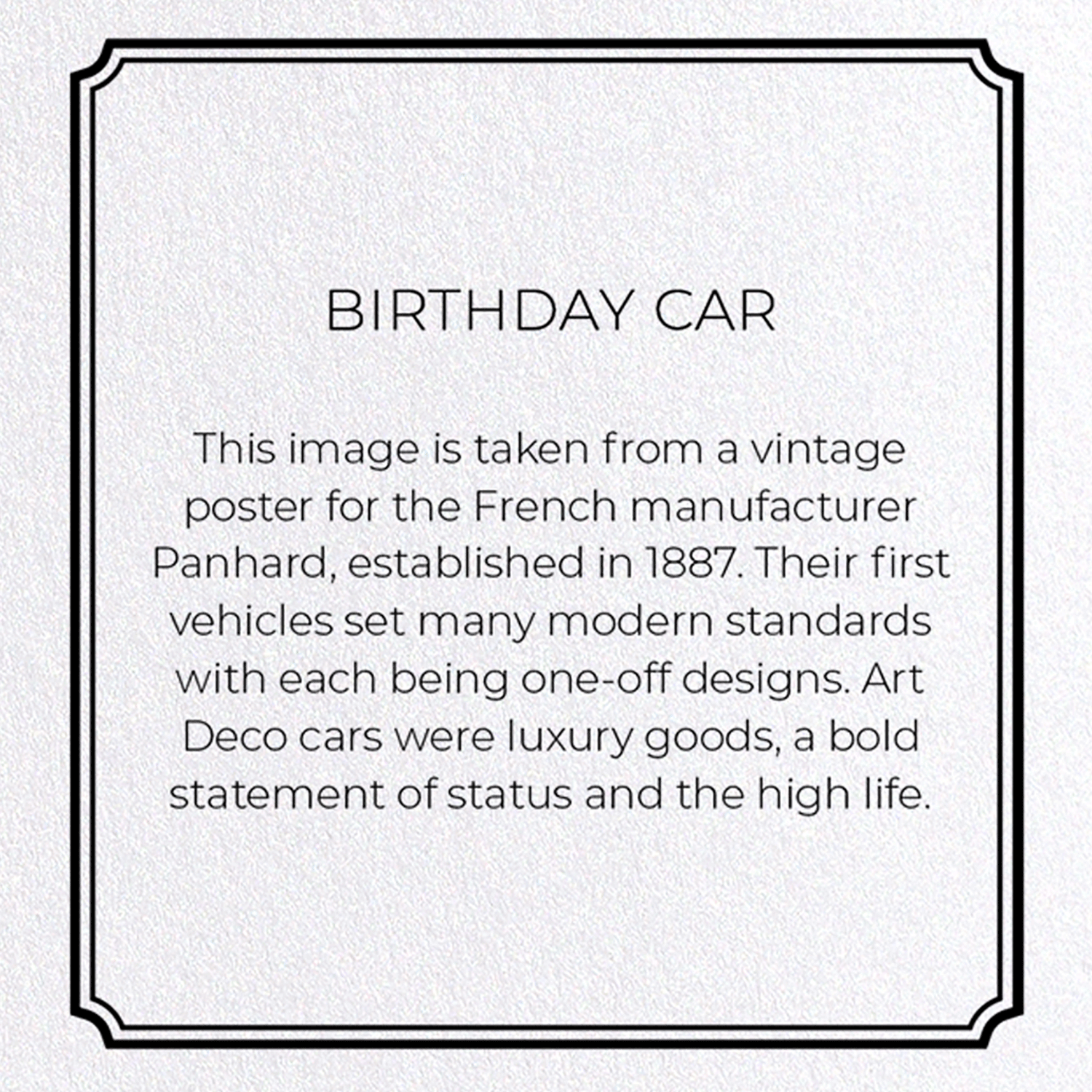 This image is taken from a vintage poster for the French manufacturer Panhard, established in 1887. Their first vehicles set many modern standards with each being one-off designs. Art Deco cars were luxury goods, a bold statement of status and the high life.