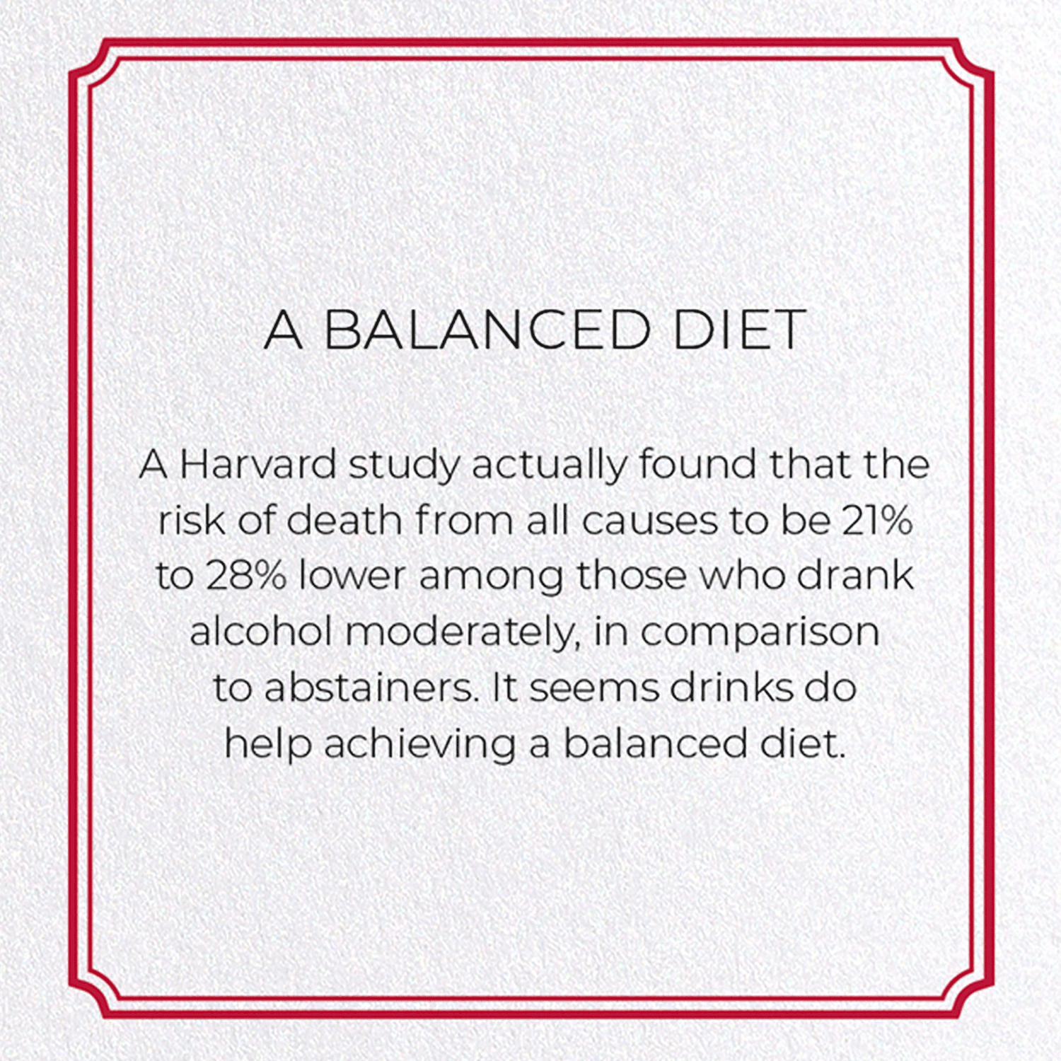 A Harvard study actually found that the risk of death from all causes to be 21% to 28% lower among those who drank alcohol moderately, in comparison to abstainers. It seems drinks do help achieving a balanced diet.