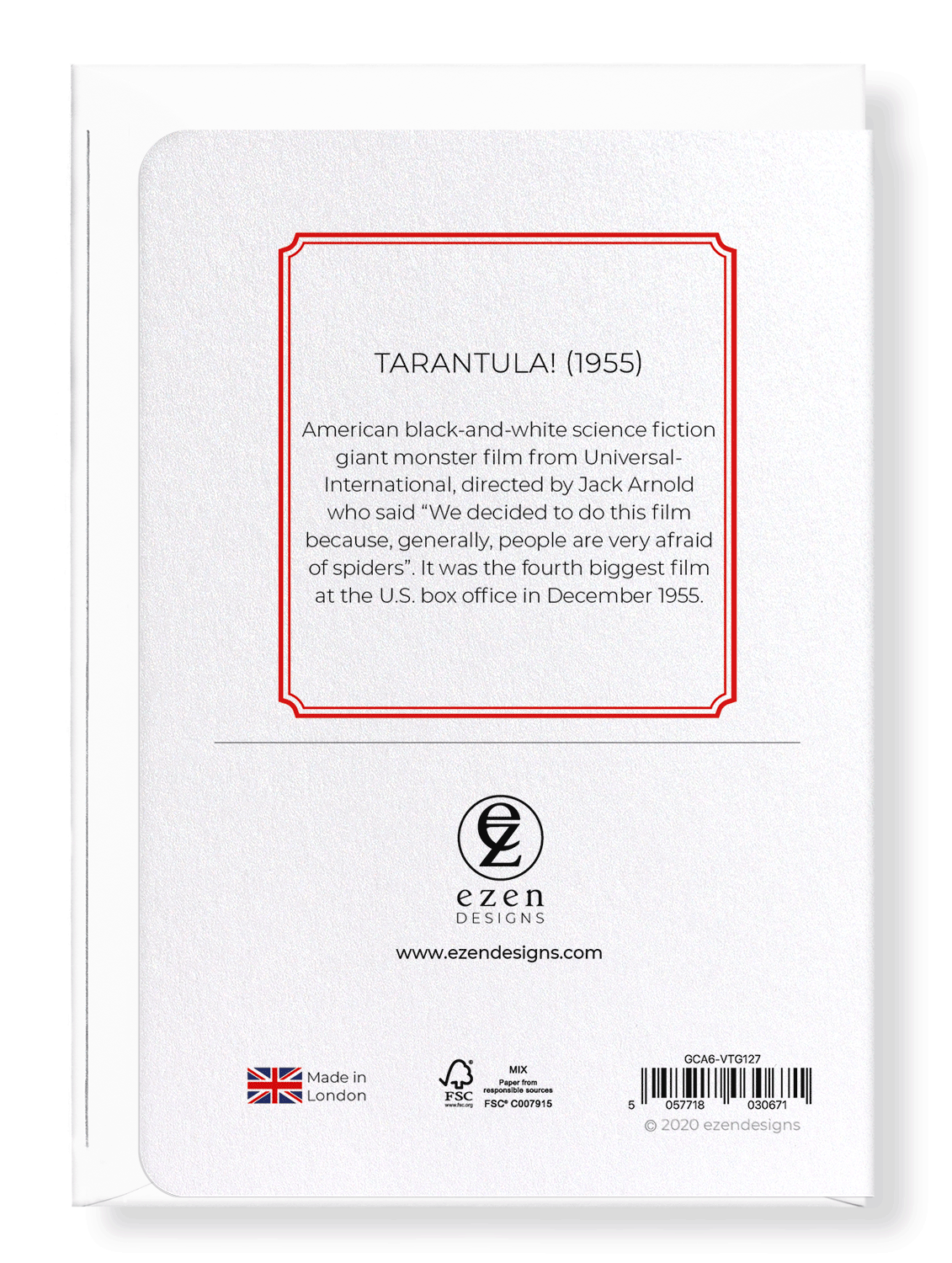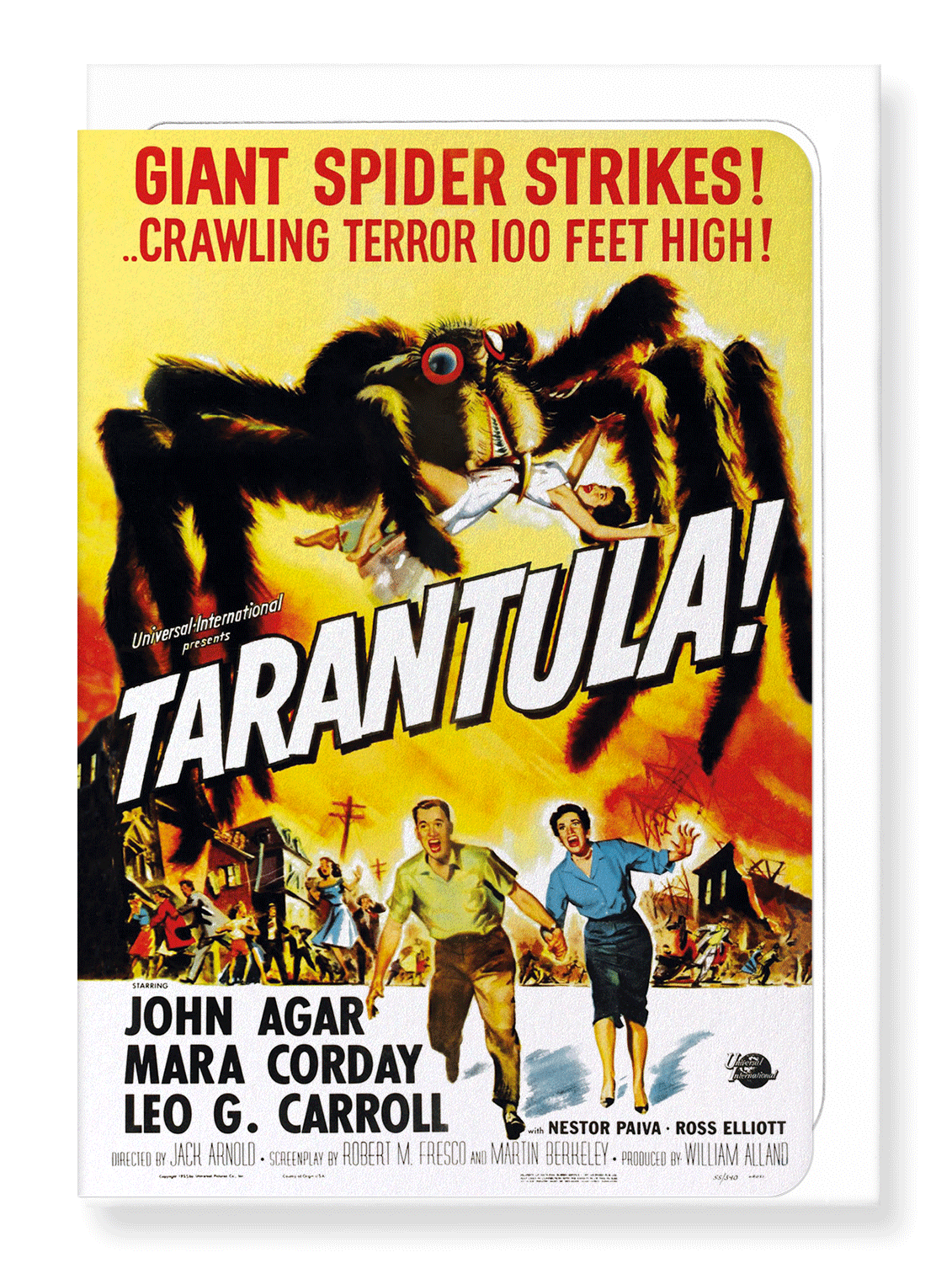 American black-and-white science fiction giant monster film from Universal-International, directed by Jack Arnold who said "We decided to do this film because, generally, people are very afraid of spiders". It was the fourth biggest film at the U.S. box office in December 1955.