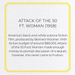 American black-and-white science fiction film, produced by Bernard Woolner. With its low budget of around $88,000, Attack of the 50 Foot Woman made enough money to prompt discussion of a sequel, however, this never came to fruition.
