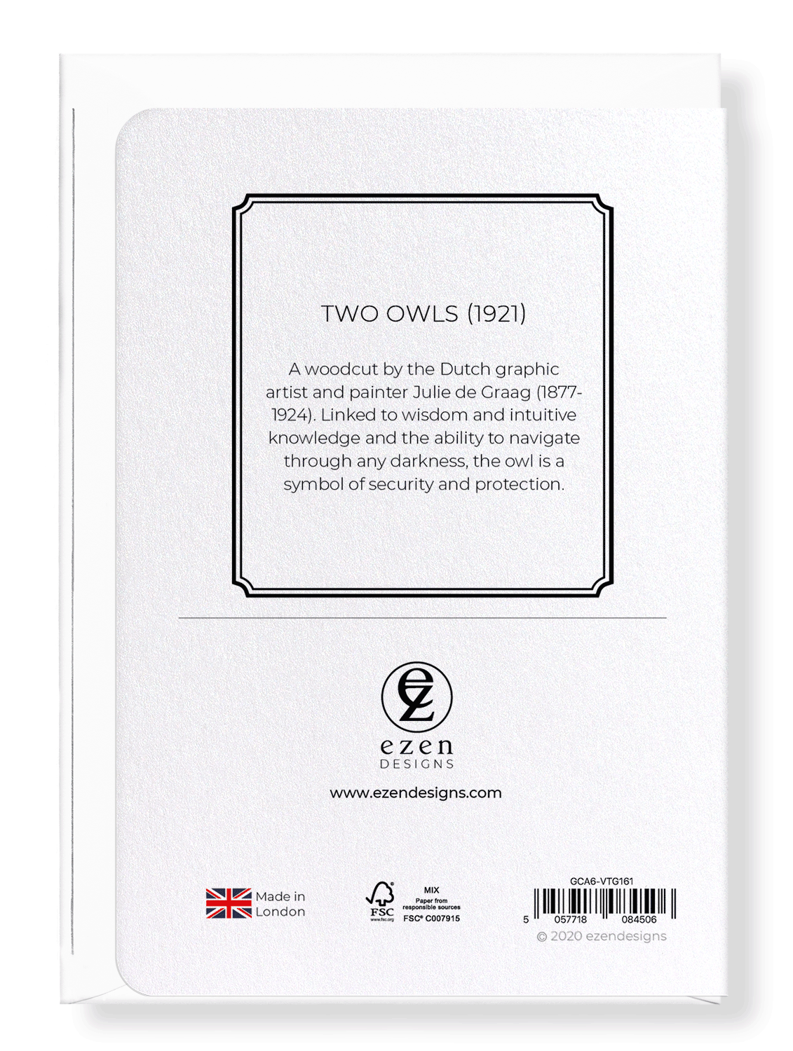 A woodcut by the Dutch graphic artist and painter Julie de Graag (1877-1924). Linked to wisdom and intuitive knowledge and the ability to navigate through any darkness, the owl is a symbol of security and protection.